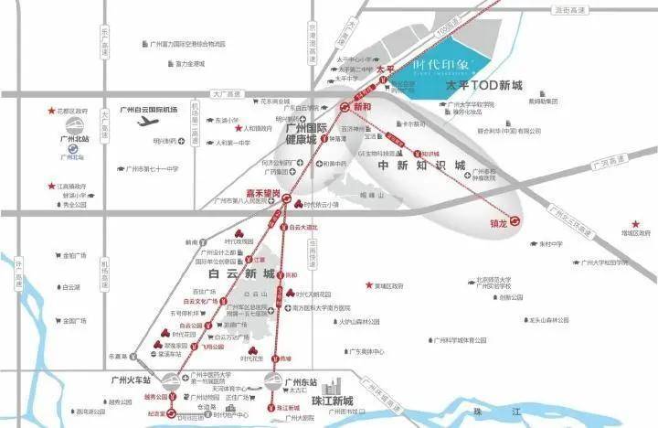 1城轨指的是新白广城际列车,在竹料站换乘,1个站即可达到白云机世界各地都十分方便。