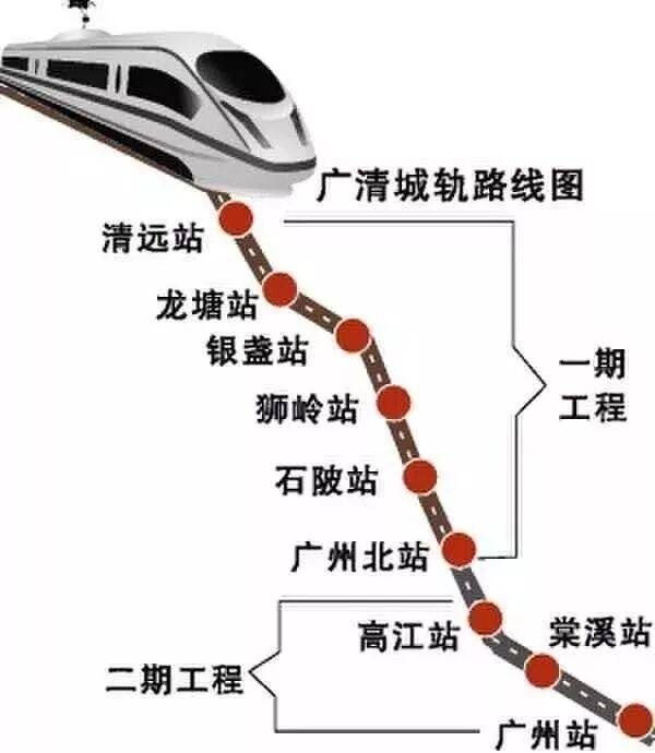 通车的广清城轨第一期,始发于花都的广州北站,接驳广州地铁九号线和武广高铁,以清远市区内的清远站为终点,从清远到花都只需25分钟。