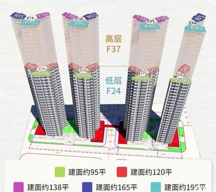 项目规划有4栋37层高层住宅楼,住宅楼都分为高区和低区两部分。