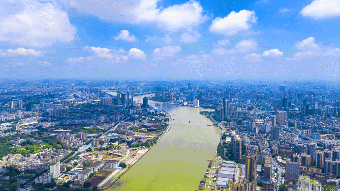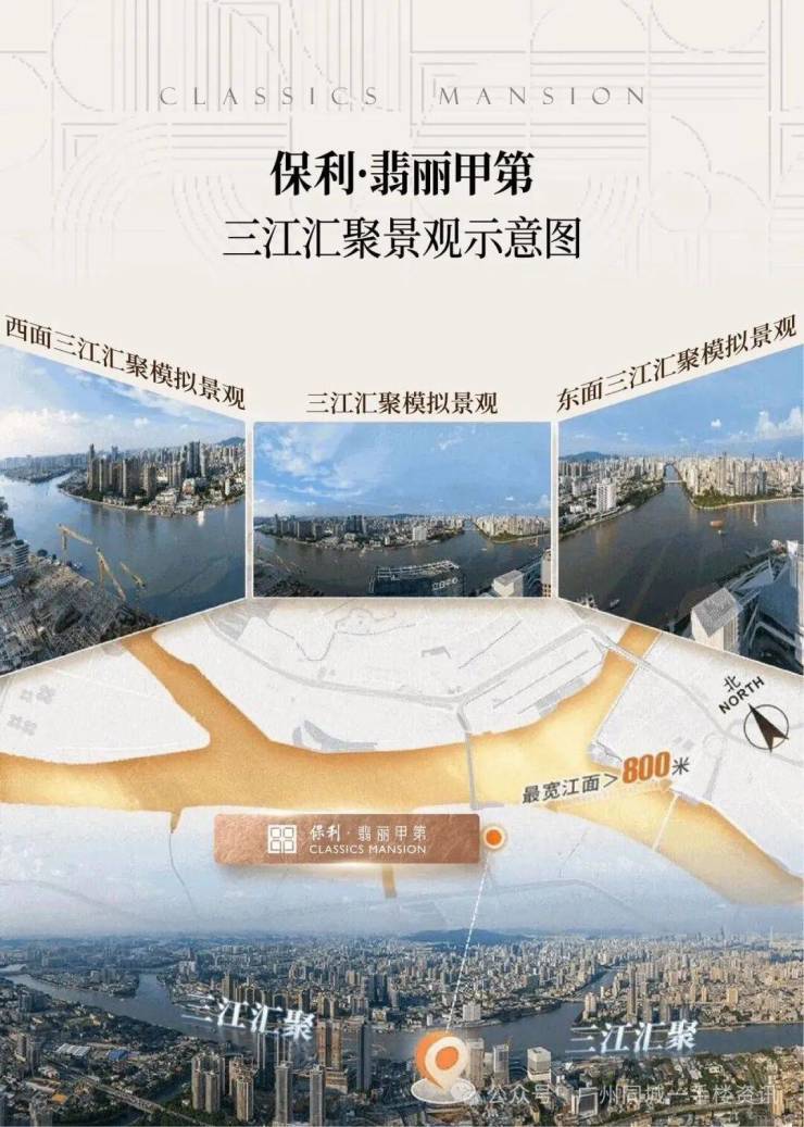 项目约90%产品可望江,最宽享约800米三江汇聚,北临白鹅潭水域,对望沙面岛上的白天鹅宾馆;东北向尽赏羊城八景“鹅潭夜月”;西北向观后航道与西航道的宽阔江景画卷