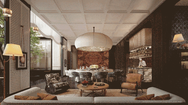 将十三行中西方贵族社交场域与会所空间相融合,打造“广州甲第十二景”,形成半岛酒店风的归家车马厅、松弛康体的室内奢华泳池、米其林餐厅标准的私宴厅等尊享定制空间,把鼎奢生活变成日常