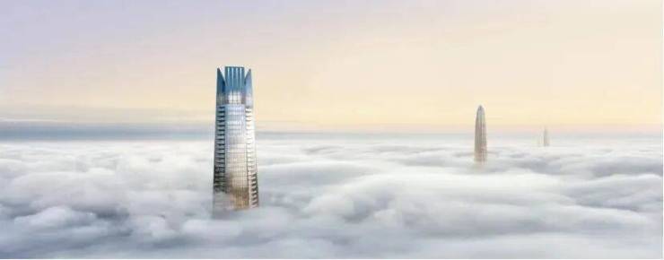 城脉中心摒弃流行的曲线,以独立塔楼和直线向天空延伸,简约、阳刚、优雅的形态致敬深圳向上进取的精神。超现代翼形立面楼体,雕刻多面棱角,造就凌空展翼之姿,更有30米高的独特塔冠设计,穿越云顶。