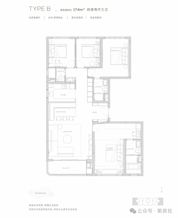所有楼栋均为16-17层纯板式小高层设计,专梯专户,打造低密舒适人居奢宅。7.1米、270度零死角的超宽视野,打造广州之最,7.1米无界横厅,折叠IMAX影院级宽幕落地窗景 。打造广州首座全铝玻璃幕墙住宅作品——全铝玻璃幕墙仅被用于世界级豪宅
