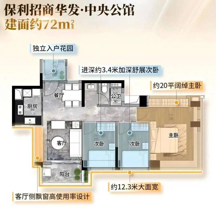 ✔建面约81-159㎡三至四房人文臻作,迭代创新户型,高使用率
