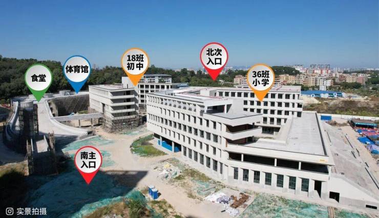 社区内自带18班幼儿园,54班九年一贯制公立中小学,小学建筑于2022年底封顶,中学主体将于近期封顶。