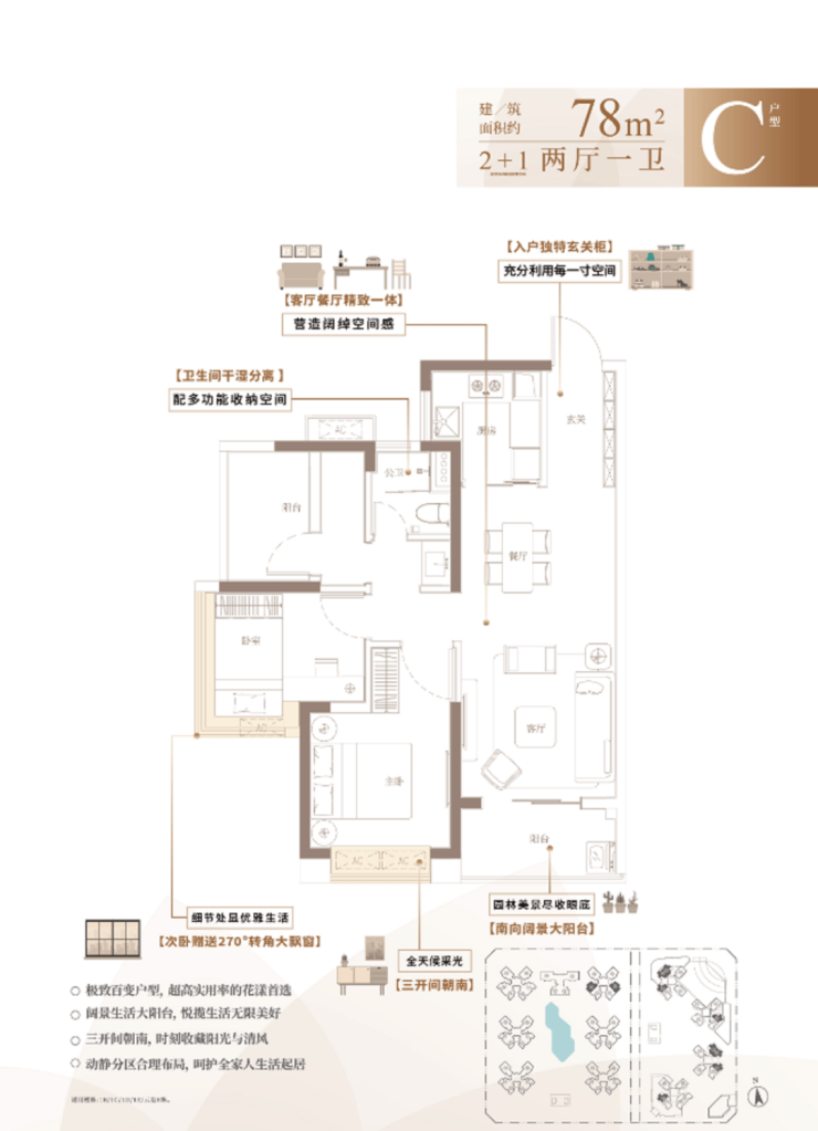 C户型:建面约78㎡ 2+1房两厅一卫