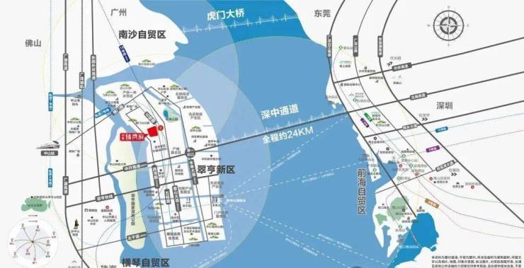 五维立体交通网:周边汇聚5大机场(宝安、白云、香港、澳门、珠海金湾)、3条地铁(中山2/4号线、广州18号线)、4条高速(中开、京珠、广澳、东部外环),无缝衔接湾区核心城市。