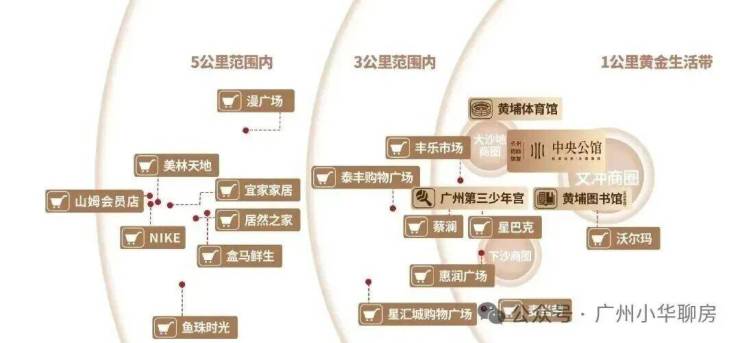 周边有三大成熟商圈环绕,即享惠润广场、沃尔玛等商业配套,5公里范围内就能到三溪美林天地、保利鱼珠时光、山姆会员店、居然之家、M-PARK漫广场等大型商业配套