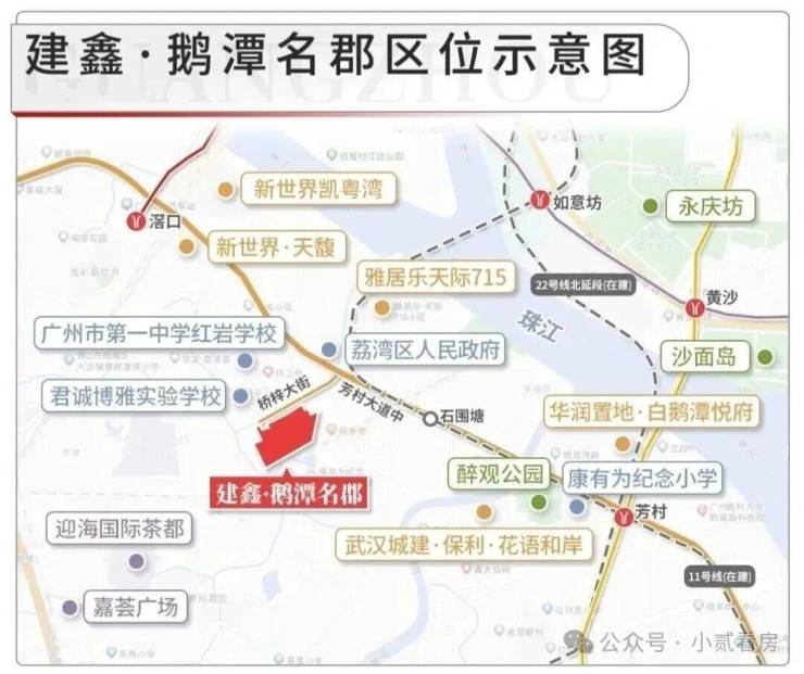 荔湾桥梓大街南侧地块位于白鹅潭板块,临近荔湾区府和芳村大道中,与在建11号线石围塘站只有800多米,去天河、海珠都会比较方便。