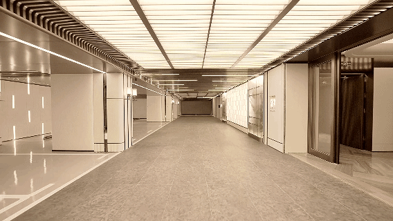 而横向设置的灯带,沿着车行道向前延伸,充满秩序感与空间感。