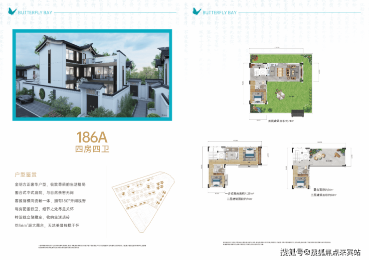 湖蝶湾·瀚园,占地12.6万平方米(189亩),总计规划了233套合院,户户朝南,并且温泉入户。