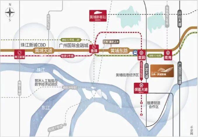 附近有广州最核心的地铁5号线保盈大道站,以及13号线的南岗站,可以直达珠江新城、金融城、鱼珠CBD