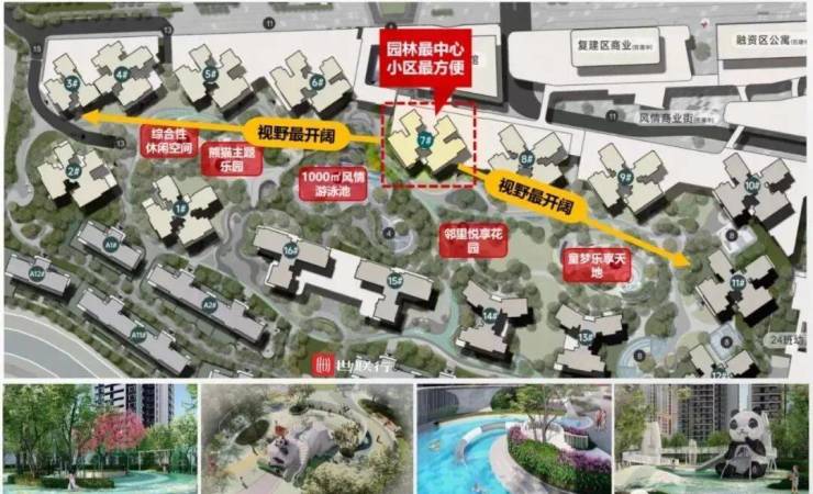 沿街商业、商业广场、大气入户大堂、风情游泳池、邻里悦享花园、观山眺台……