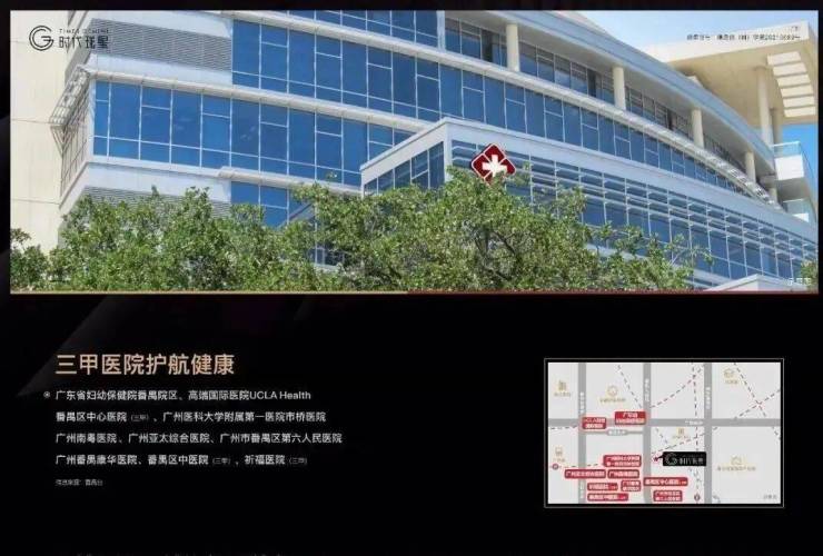 医疗方面,项目附近有番禺区中心医院(三甲)、番禺区中医院(三甲)、祈福医院(三甲)、广州中医药大学番禺中医院(三甲)、广东省妇幼保健院番禺院区(三甲)。