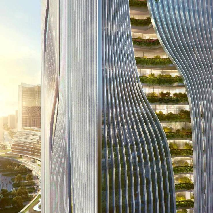 ✅ 流水式外立面,三层夹胶中空low-e玻璃
