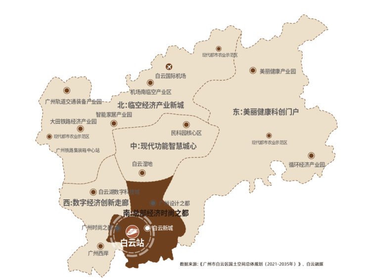 广州白云站,规模约263万㎡,体量4倍于广州南站,帷幄“国际交通枢纽湾区门户”主引擎,白云站TOD链接全国。