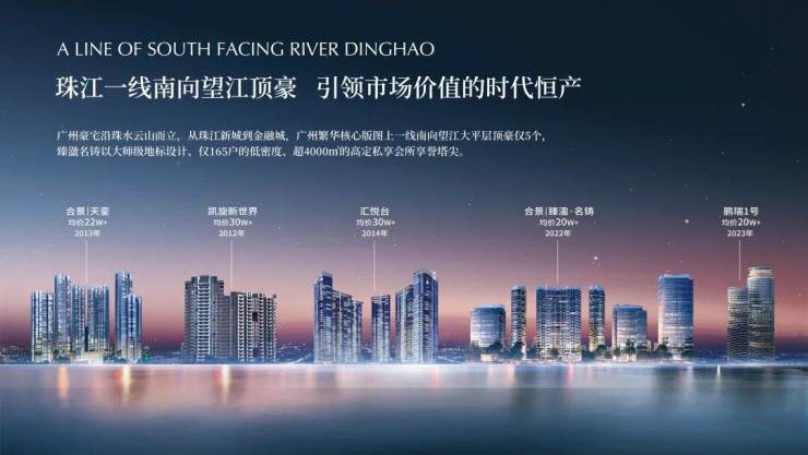 ✨价格之巅:一线珠江价格之巅,天河南向头排的商住用地,迎江而立皆地标,天河南向最后且唯一住宅用地。目前广州一线江景的二手商住项目(10年楼龄)均在20万+起步,一线首排临江单位更是高达30万。