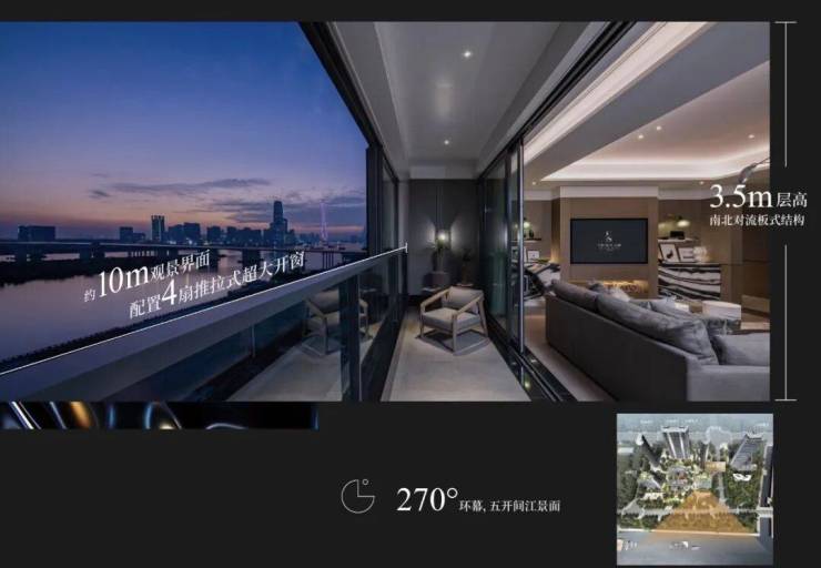 ✨景观之巅:天河一线临江唯一最近坐标,南面临江最近仅70米,广州豪宅最靠近江的唯一地标。180-270°IMAX环览超8公里江景,珠江新城、琶洲会展、金融城、鱼珠港尽收眼底,尽享江景与城景兼备的双重景观资源。