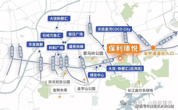 保利香山瑧悦府:项目位于“博爱路”一城核心主轴,接驳长江路、中山路等主干道。同时,广澳高速入口也是深中通道的博爱路出入口,未来经深中通道 40 分钟左右即可抵达深圳。