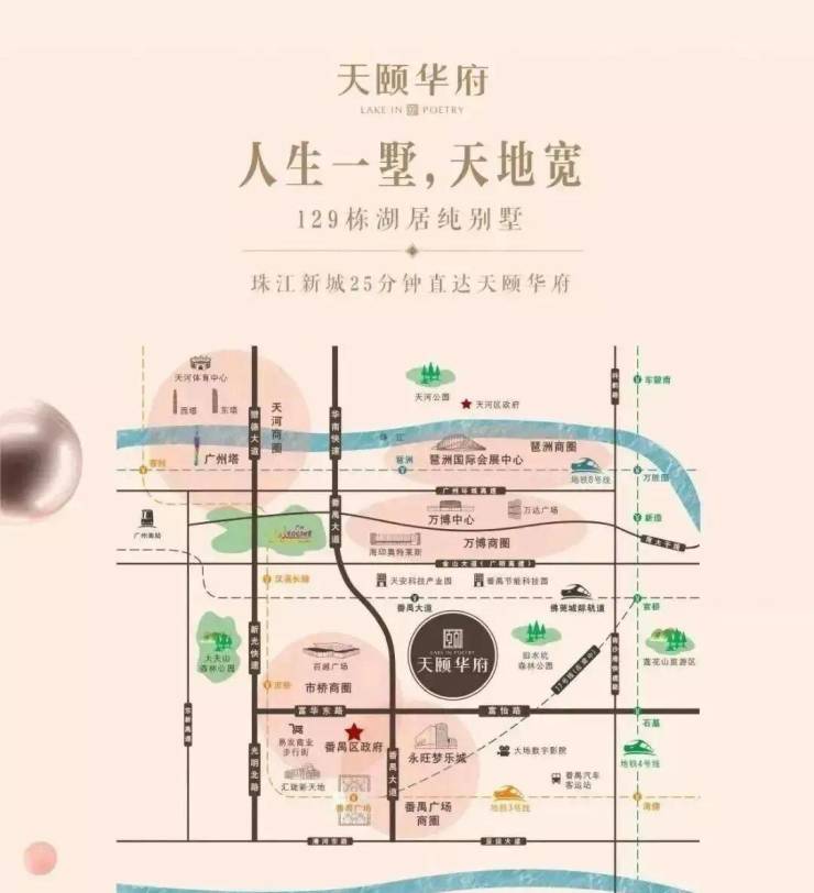 作为番禺广场板块唯一纯别墅 ,天颐华府于天赋地脉之上,集萃一城精华。北接广州第四CBD万博板块,南承对外开放门户枢纽南沙自贸区,东靠番禺创新经济与产业开发板块,西连南站板块。