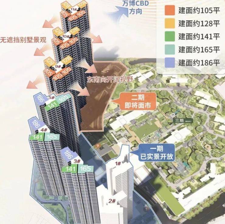 近期准备加推的二期在位置上更靠近万博CBD,在景观上享受南向观园,跟最优朝向相一致。加推11号楼!!!