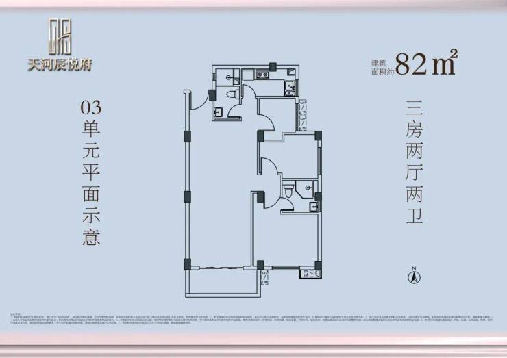 •03 单元(建面约82㎡ 东南向):三房两厅两卫,东南向双面采光,通风效果更优;厅出阳台视野开阔;厨房兼顾操作与采光,客卫带窗干湿分离;双次卧东向采光充足,主卧南向开窗,采光通风双优。