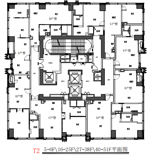 【户型面积】:195-280-320-420平小面积:建面约40-70m2(T1:5-39楼)