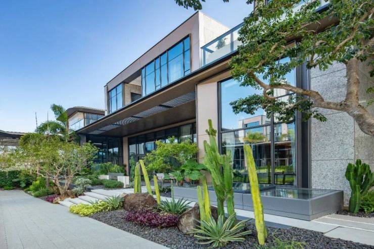 以泰式度假美学为蓝本,精选火山岩碎石与苹果木纹砖手工铺设,粗犷与温润交织成自然协奏曲。逾三十年树龄九里香,龙舌兰、量天尺等沙生植物筑起馥郁芬芳的迎宾风景线,让归家成为治愈身心的自然探索。