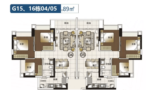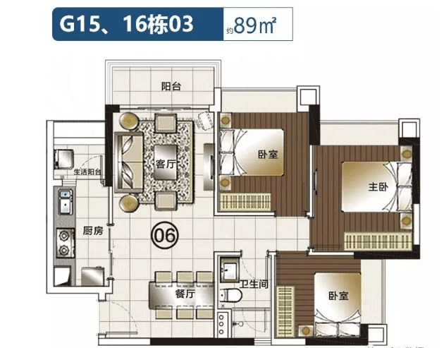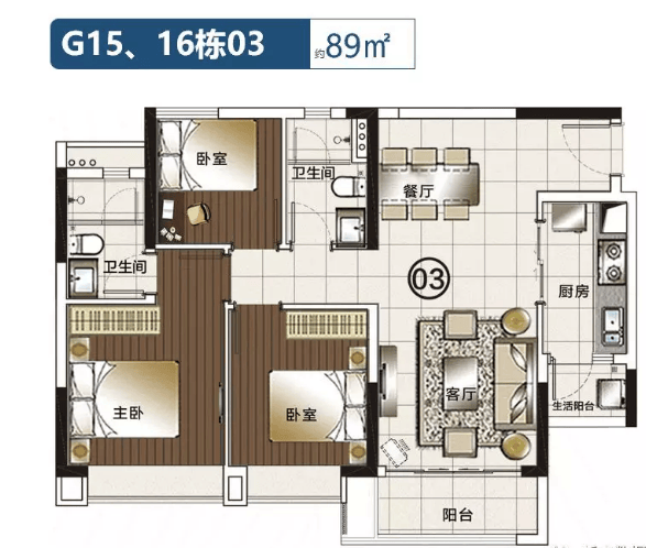 89㎡3房2厅2卫 西南向
