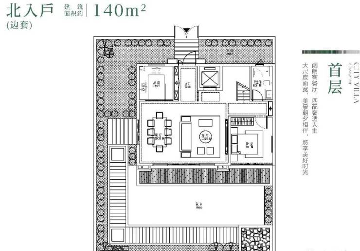 【建面约140㎡ 联排别墅】约140㎡可做5房4卫,买140㎡赠送180-238㎡,赠送率最高达160%;