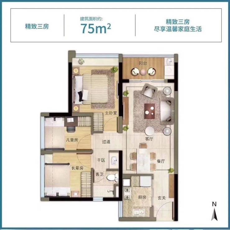 77㎡3房2厅1卫 北向