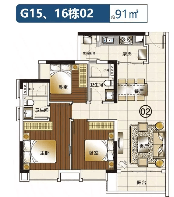 92㎡3房2厅2卫 东南向