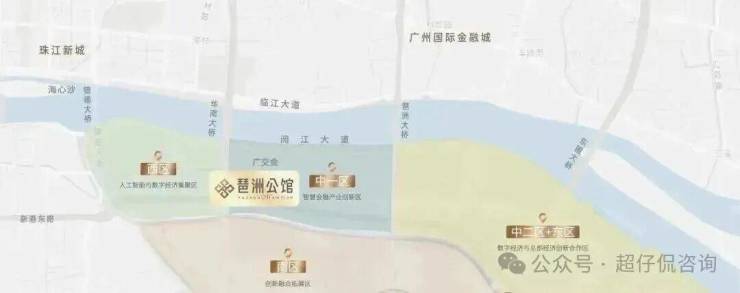 琶洲与珠江新城、金融城形成广州CBD黄金三角,琶洲定位为国家级人工智能与数字经济试验区、省级经济开发区、市级总部经济集聚区等创新平台称号,是广东省谨此一个在市中芯经开区,将打造“数字+会展+总部”融合创新的产业新高地。