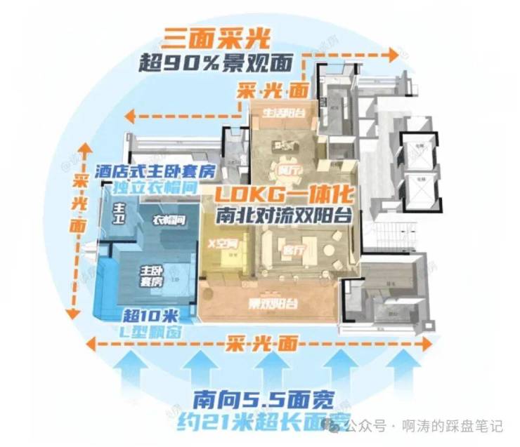全屋南向5.5开间,约9.3米长IMAX景观阳台