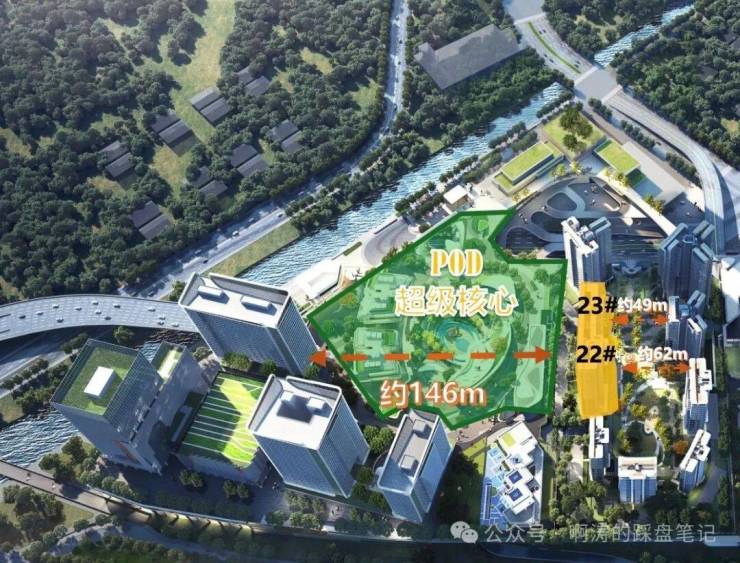 南向超100米楼间距,北向最大达约62米;北向看中央花园,远望琶洲CBD景观;南望POD超级核心