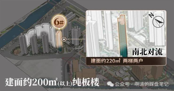 6栋坐拥全盘中央腹地,是一期东南向头排顶点楼栋,属于稀缺的白地组团(白地基本为200㎡以上的大户型),业主圈层纯粹。