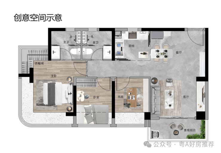 96㎡四房两厅两卫,5.7m阳台,南向大面宽采光。