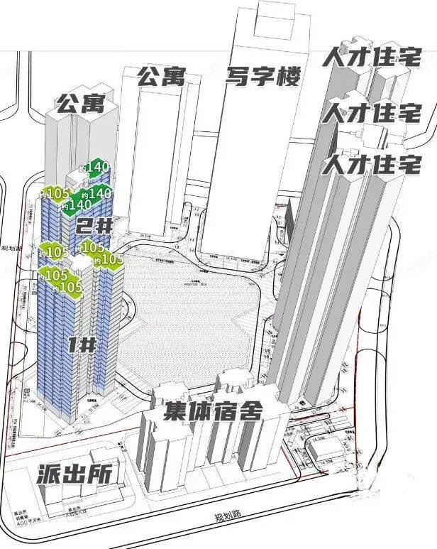 整个项目包含商业住宅、商业写字楼、人才住宅等多种业态。东地块规划有 2 栋住宅、2 栋公寓、1 栋写字楼和 3 栋人才房;西地块包含 6 栋商品房住宅,总的来说,不算是很纯粹的一个社区。