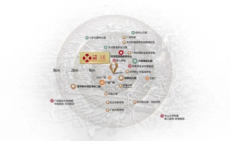 医疗配套方面,广州医科大学附属中医医院天河院区(约 8km)、中山大学附属第三医院岭南医院(约 8km)等三甲医院提供优质医疗保障,蕙心医院(约 380 米)、岭南养生谷中医医院(约 1300 米)等近距离医疗资源,让居民健康生活更安心。