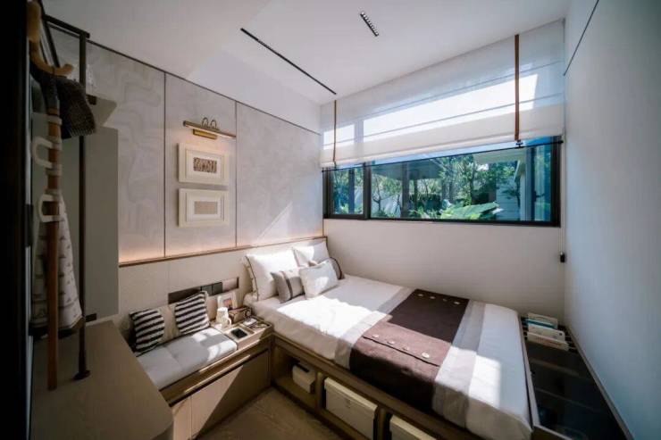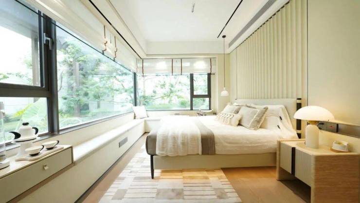 南向约24㎡套房式主卧,0飘窗设计,270°环幕视野。除了优越的视野景观,主卧更配备了步入式衣帽间+独立卫生间,既保证了生活的便捷性,又减少了公共区域的干扰。