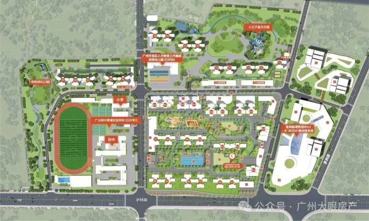 4大医疗保障:中山大学附属第一医院(三甲)、广州医科大学附属第五医院(三甲)、广州市黄埔区中医医院、天河第二人民医院(规划中)