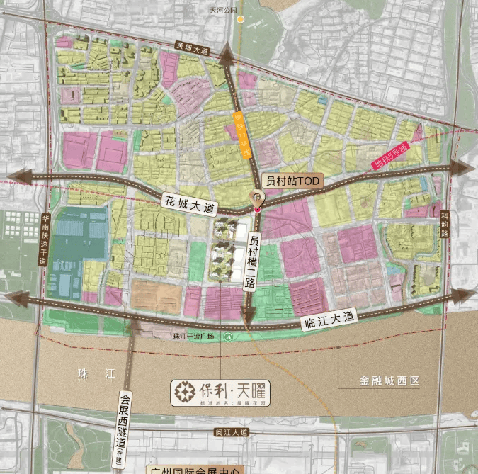 这也是天河比较难得的靠近地铁站的盘,地块东北侧距离地铁5号线与11号线交汇的员村站仅150m,5号线+11号线可以连通广州最核心的几个商务圈---珠城、琶洲、天河北、白鹅潭等等,通达性很强。