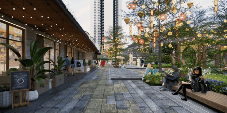 从效果图上可以预见,未来这里将形成 “商业+文化+生态”的三位一体沉浸式体验圈。