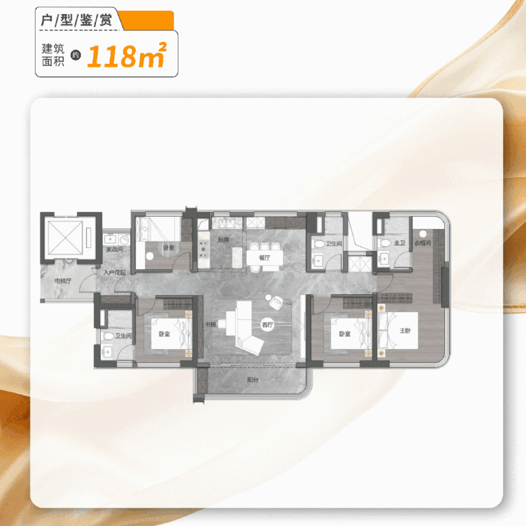 在中建·岭南序约118㎡户型里,偏偏打破了“大户型才配高端配置”的惯例。