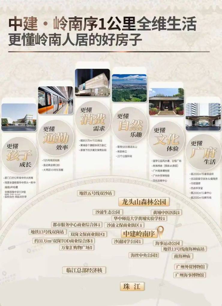 北侧紧邻5000亩龙头山森林公园,1公里范围内还有南海神庙、海事博物馆、外贸博物馆等文化地标,自然与人文的双重滋养,让生活不止于物质的丰盛,更有精神的丰盈。