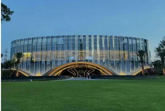 开放的营销中心,玻璃幕墙+弧形线条的售楼部,更像是个艺术藏馆,未来将成为业主们的滨江会所。