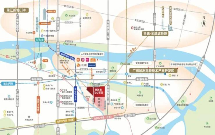 琶洲南TOD是目前唯一一个在核心区的TOD产品,项目位于琶洲南区的赤沙车辆段地块,位置堪称琶洲电商总部区“天选之子”。东侧紧挨华南快速路,一脚油门就能到珠江新城、广州塔。站在楼下,可以直接看到小蛮腰。北侧过了黄埔涌,就是高楼林立的电商总部琶洲西区。
