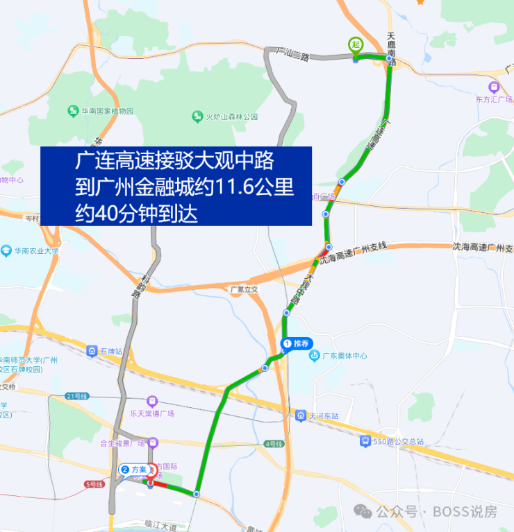 自驾方面,项目北边就是快速路广汕二路,500米就是广连高速,接驳广佛肇高速和广州环城高速,去珠江新城,金融城和琶洲三个中心,时间基本都在40分钟左右。