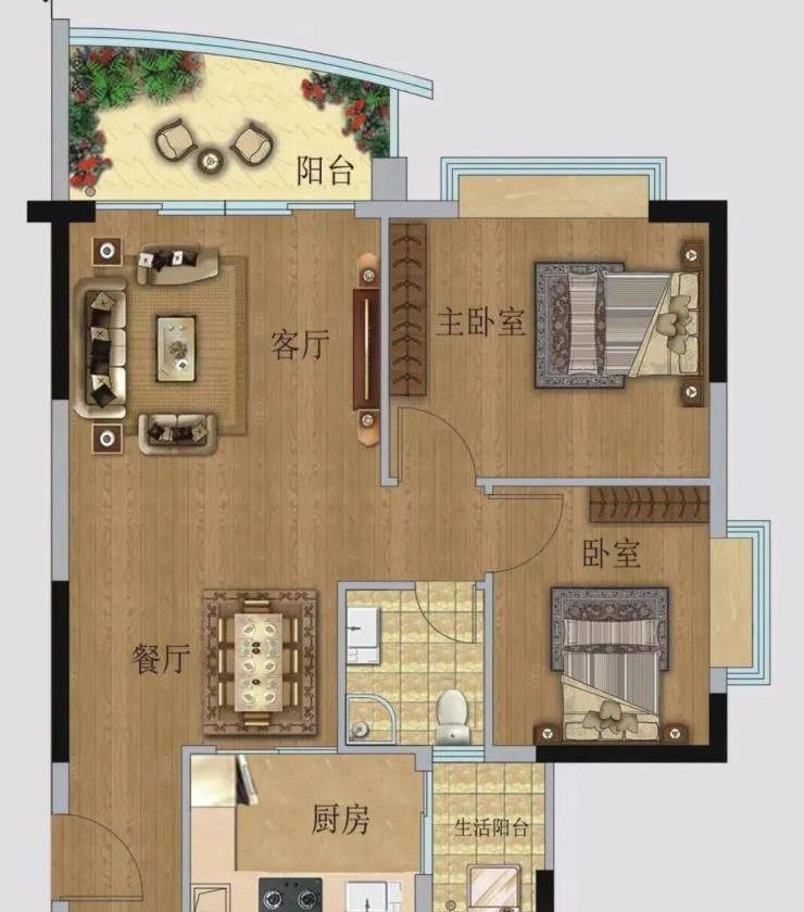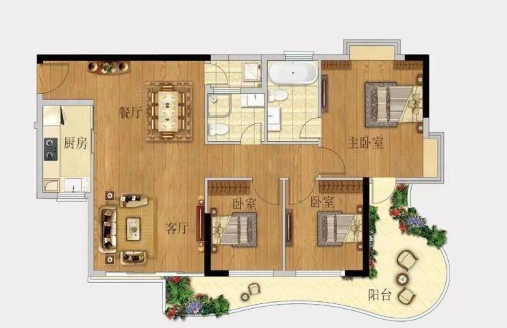 03户型【82㎡2房1卫】南向园林景观,270°景观阳台设计,单边采光“LDK”一体化客餐厅,增加空间互动感,2+1灵活空间,阳光书房,三面朝南,精美园林景观