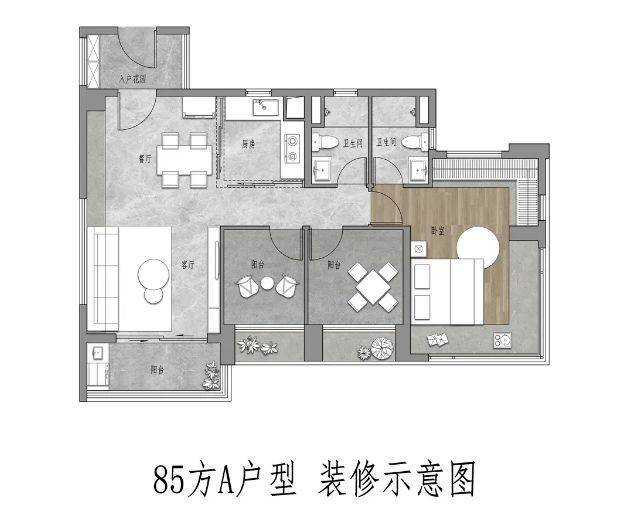 在产品力上,保利云境展现出极强的市场敏锐度。主力户型涵盖68㎡三房、85㎡三至四房及110㎡四房,全部采用高实用率设计,普遍超过110%,在同面积段产品中极具竞争力。68㎡户型做到南北通透,客餐厅开间达3.6米,主卧配备270°巨幕飘窗,小户型也能拥有大尺度感;85㎡双南向阳台+全南卧室,采光通风俱佳,主卧同样带飘窗,提升居住舒适度;110㎡则主打改善需求,6.7米景观阳台直面园林,主套面积超30㎡,功能分区清晰,私密性与仪式感兼备。围合式布局确保多数单位享有良好视野与低干扰环境。这些户型精准切中刚需上车与刚改家庭的核心痛点——既要控制总价,又要空间够用、住得舒服。